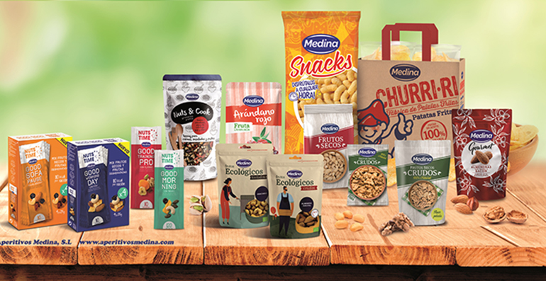 Aperitivos Medina es una empresa familiar, productora de frutos secos y snacks, con más de 50 años de historia. Cuenta con una plantilla de más 100 empleados y tiene su sede en Madrid. Una de sus principales líneas de negocio es la fabricación de marcas para la distribución. Su centro de producción elabora casi 800 referencias, agrupadas en cuatro líneas de productos: frutos secos, frutas desecadas, snacks y patatas fritas. En 2017 registró una facturación de 36 millones, creciendo en los últimos tres años un 40%, y en 2018 creció un 10 % en unidades facturadas, consolidando una facturación de 37,2 millones de Euros.