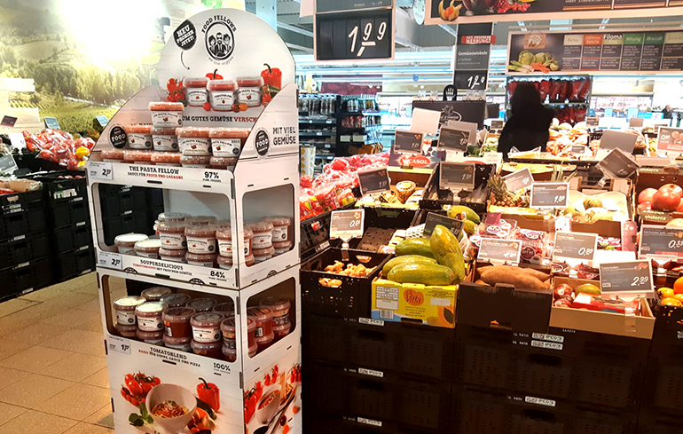 Obeikan MDF lanza una nueva colaboración en supermercados de la mano de Food Fellows, la empresa de innovación de Harvest House (una de las principales cooperativas productora de ensaladas de Holanda), a través de varios displays personalizados para la venta de salsa de tomate en supermercados alemanes.